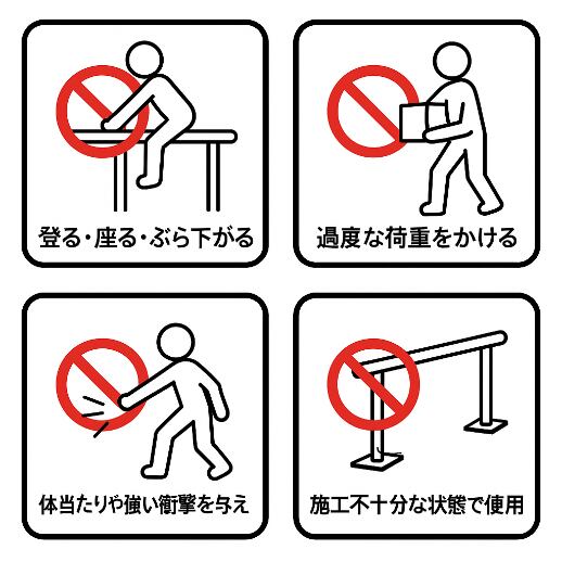 フェンス本来の目的以外でのご使用は危険を伴いますので、下記の行為は固くお断りいたします。